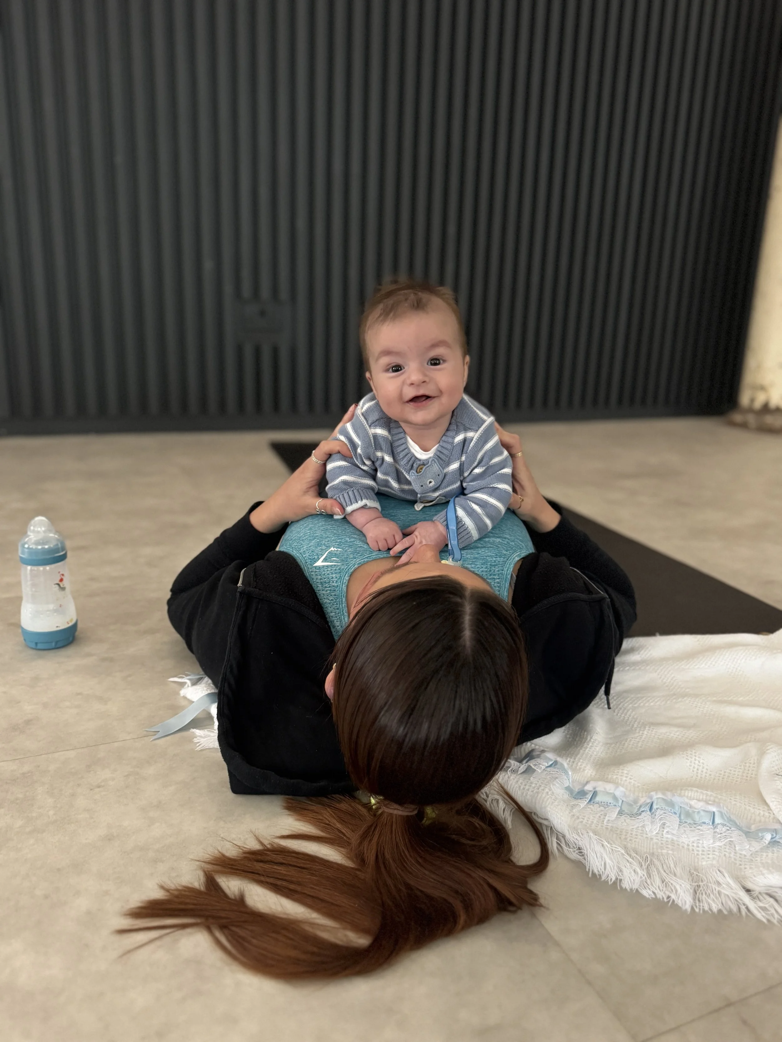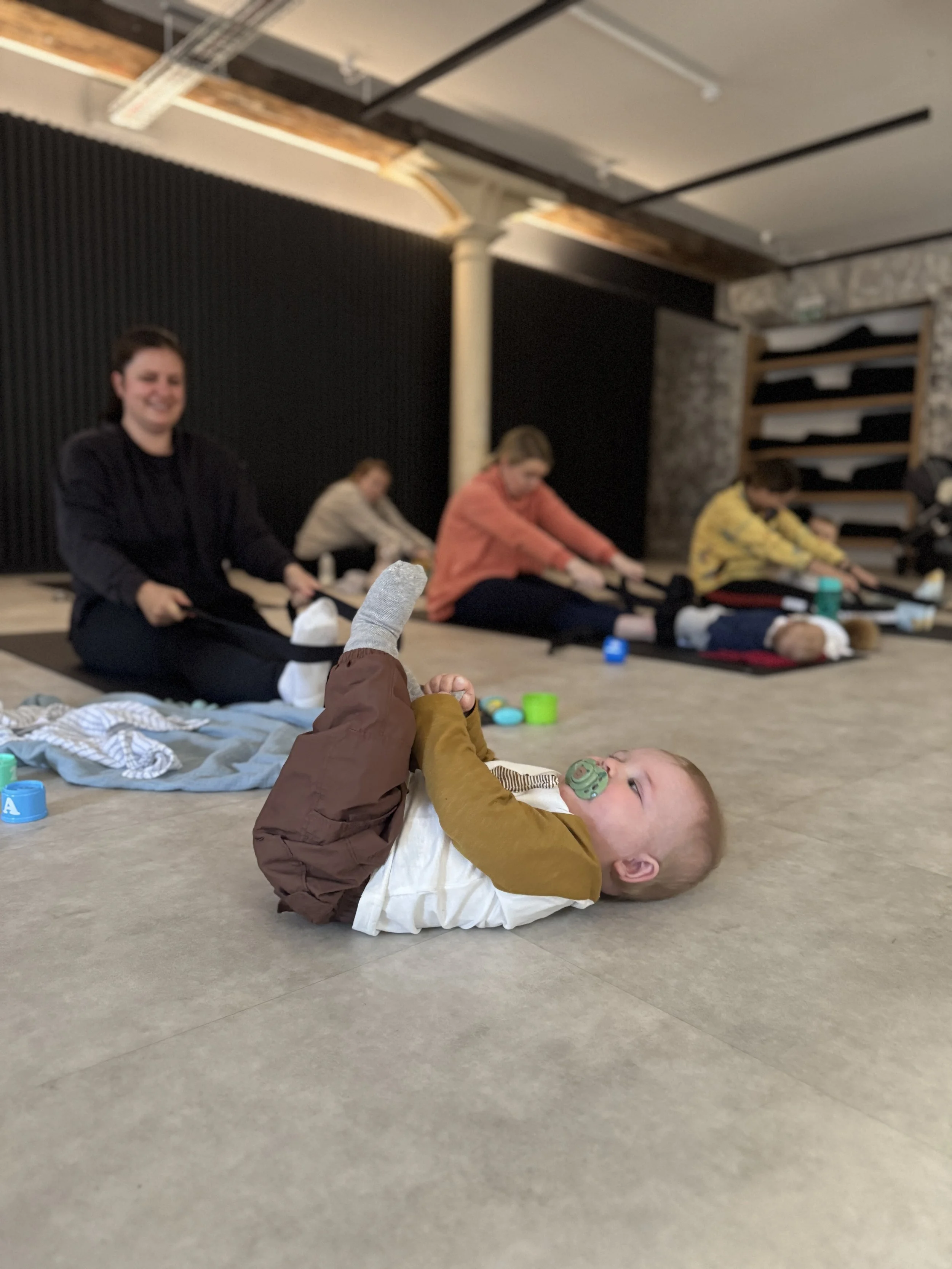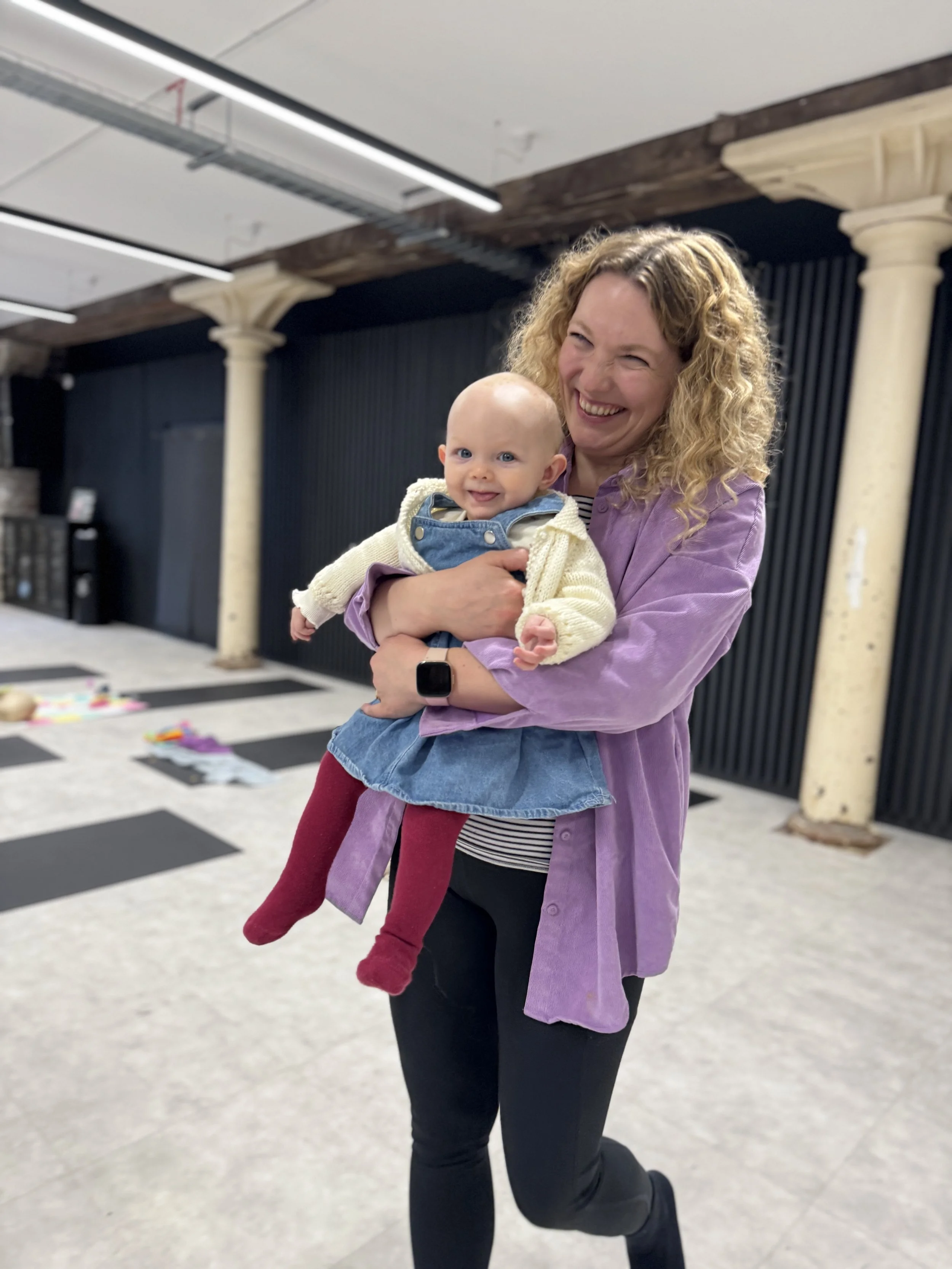The class gently guides you through simple, accessible movement and breath — supporting strength, mobility and nervous system regulation — while your child stays close and free. You don’t need childcare. You don’t need them to sit still. You don’t need to choose between moving your body and meeting their needs.